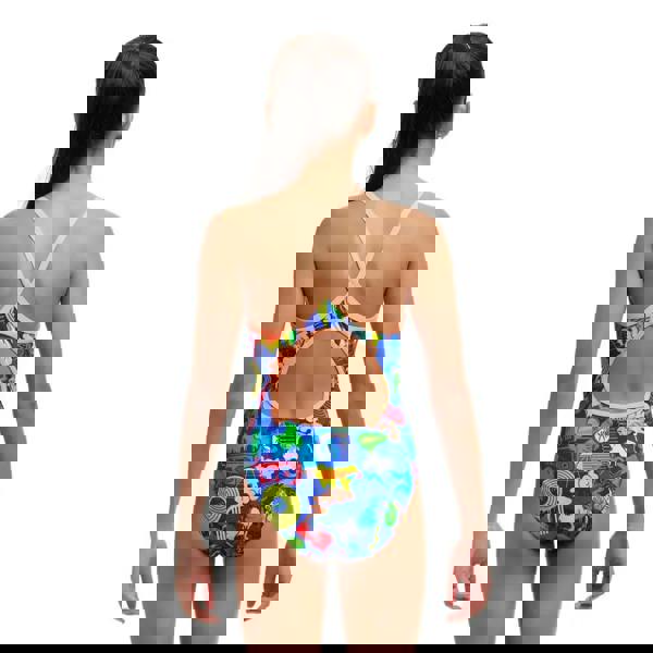 The Girls Blues Baby Diamond Back Swimsuit from Funkita is designed with colourful, fun prints of music icons all over a blue background. The single-bind shoulder strap in pink provide freedom of movement and comfort while the medium leg height and front lining offer moderate support. Made from ECO C-Infinity fabric, the swimsuit is 100% chlorine-resistant and long-lasting.