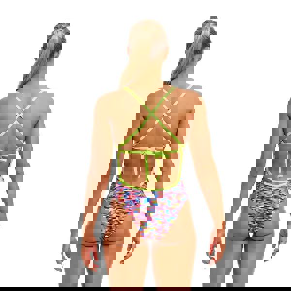 The Go Gammon Tie Me Tight Swimsuit from Funkita is ideal swimwear for regular pool sessions and training. The thin single bind straps in yellow can be tied at the back, giving you the flexibility to adjust the fit of the swimsuit. This swimsuit is made from durable ECO C-Infinity fabric and provides high chlorine resistance.