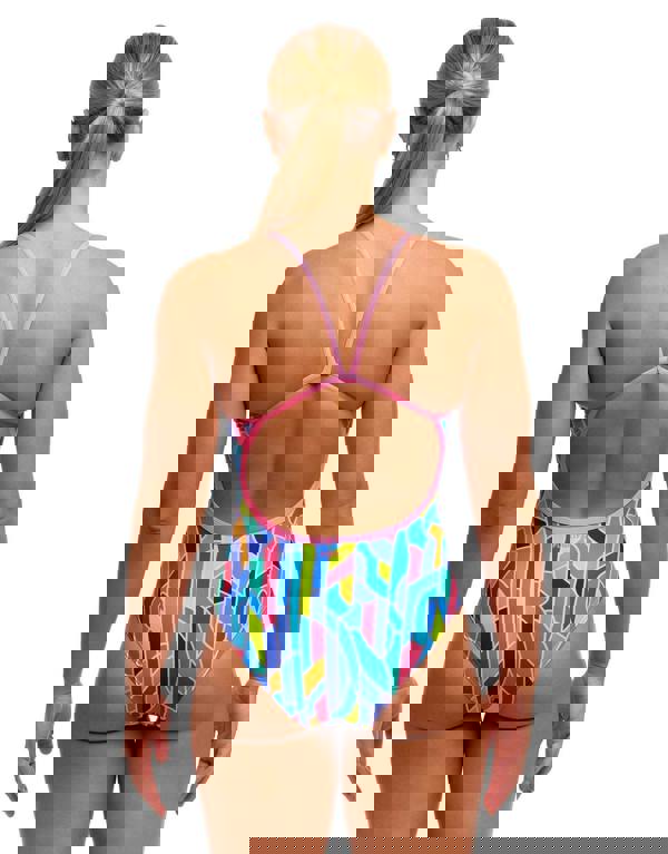 Designed for dedicated swimmers, the Pillared Single Strap Swimsuit by Funkita, combines a stunning organic pattern in pinks and blues with performance engineering. The thin, single strap in pink, promotes freedom of movement with an exposed back. The medium-cut leg and integrated front lining provide balanced coverage for lap swimming and training. Built from Eco C-Infinity fabric, this suit withstands repeated chlorine exposure without degradation, ensuring reliable performance season after season for serious aquatic athletes.