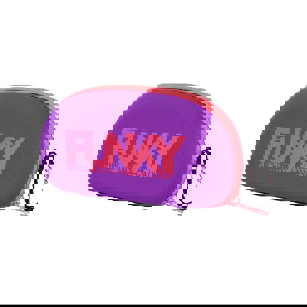 The Purple Punch Case Closed Goggle Case by Funkita offers strong protection with its hard shell purple exterior and soft interior that shields your goggles from scratches and impacts. Its vibrant bright pink zip keeps your goggles securely stored, while the large bright pink 'Funky' logo adds a stylish flair. Equipped with a robust carabiner, this case easily clips to your FUNKY backpack or mesh gear bag, ensuring your goggles stay protected and within reach on all your adventures.