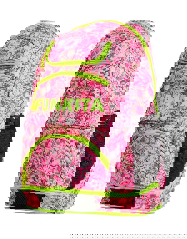 The Rosie Cheeky Elite Squad 36L Backpack by Funkita is perfect for swimmers who want style and organisation, with elegant floral prints and 36L capacity. It has a goggles compartment, a waterproof base, mesh sections, a cooler pocket, and large laptop section. Adjustable padded straps and a supportive back panel ensure maximum comfort wherever you go.
