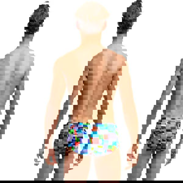 The Funky Trunks Boys Chip Set Swim Trunks are ideal swim trunks for frequent swimming pool sessions and for recreational and performance-based swimming. Giving a retro vibe with blocks of black, blue red and cyan patterns, the unique pattern will make an impact in the pool. With a drawcord to keep your trunks in position and a wide elastic leg opening and waistband for extra comfort, these trunks offer great durability and 100% chlorine resistance made from exclusive ECO C-Infinity fabric.