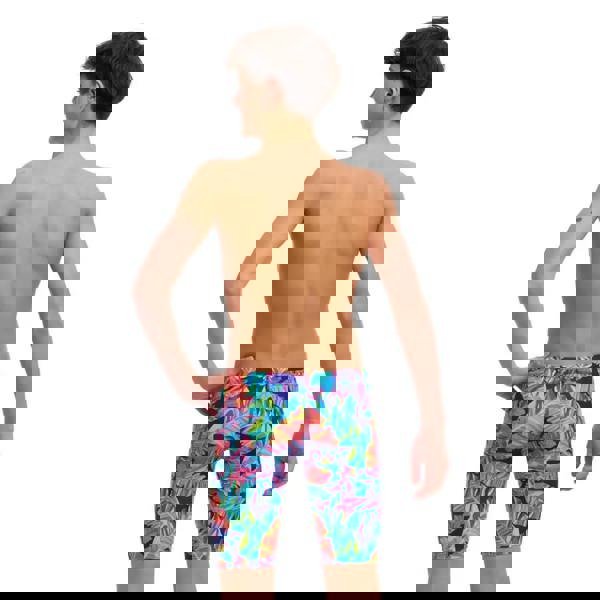 The Boys Leaving Today Swim Training Jammer from Funky Trunks is the perfect swimwear for regular training and swimming, designed with leave prints. Featuring a drawcord, wide elastic leg opening, and waistband, it provides a comfortable and secure fit while swimming. Made from eco-friendly ECO C-infinity fabric, this jammer offers great durability and high chlorine resistance.