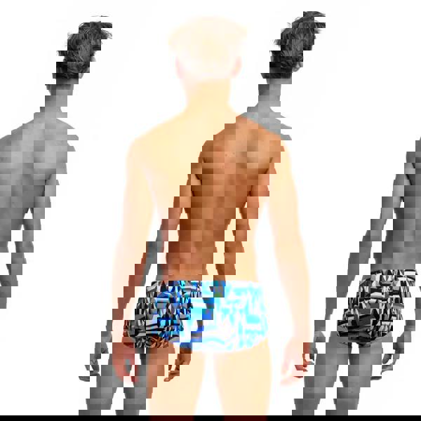 The Boys Polar Caps Sidewinder Swim Trunks from Funky Trunks are inspired by a polar ice cap in blues and are perfect swimwear for frequent pool use for recreational and performance-based swimming. The drawcord keeps the trunks in position, and the wide elastic leg opening and waistband add comfort around your hips and legs while swimming. Made from ECO C-Infinity fabric, it offers great durability and high chlorine resistance.