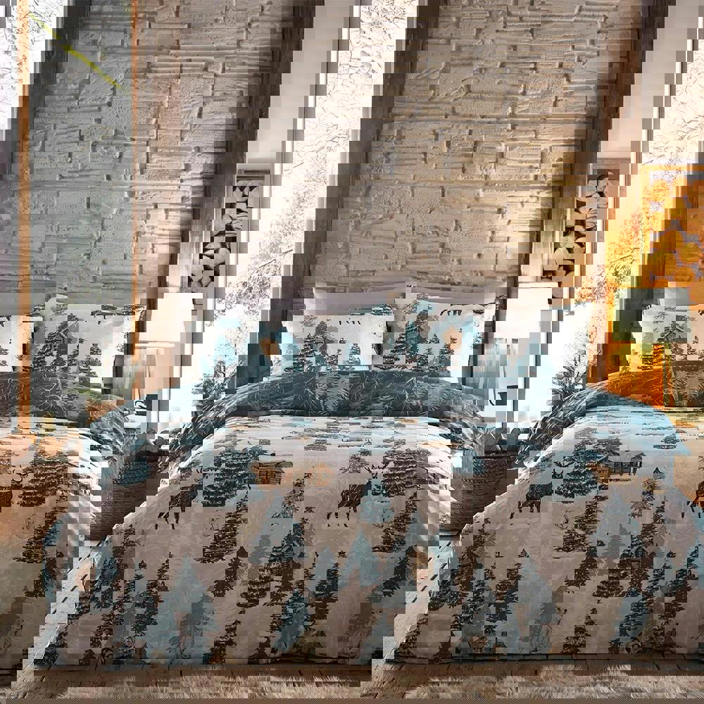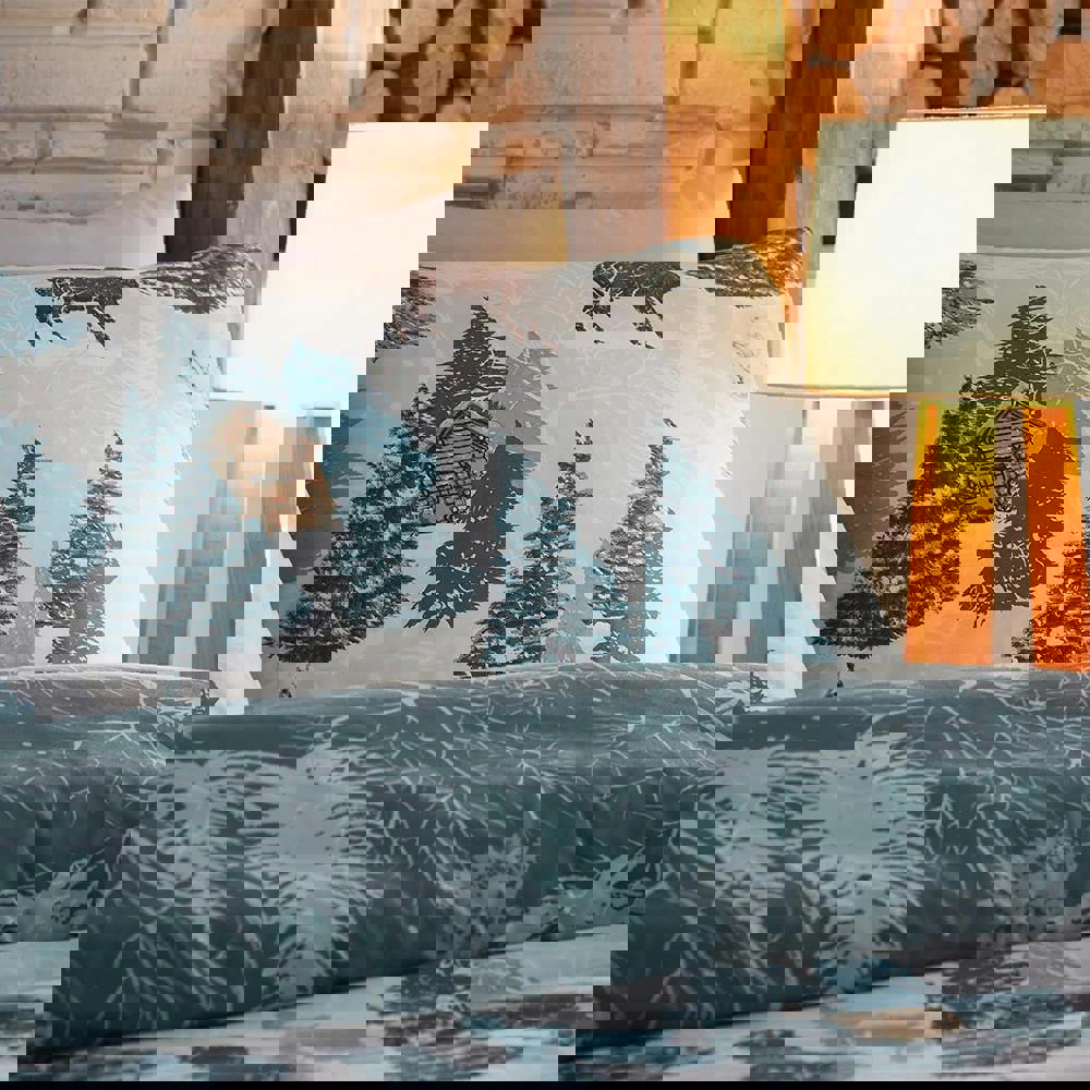 The Furn Arcticus Arctic Animals Duvet Cover Set in blue brings a playful, winter-inspired look to your bedroom. Featuring an Arctic animals design with foliage, pine, snow and log cabin details, it’s an easy way to refresh your space while keeping your bedding coordinated.