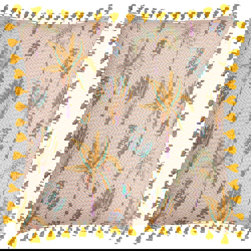 The Furn Chamae Tassel Floral Cushion Cover in coral is designed to refresh your soft furnishings with a bold, patterned look. Featuring a printed floral design with contrast colour detailing and a zig zag finish, it adds visual interest to sofas, armchairs or beds while keeping your space feeling coordinated.