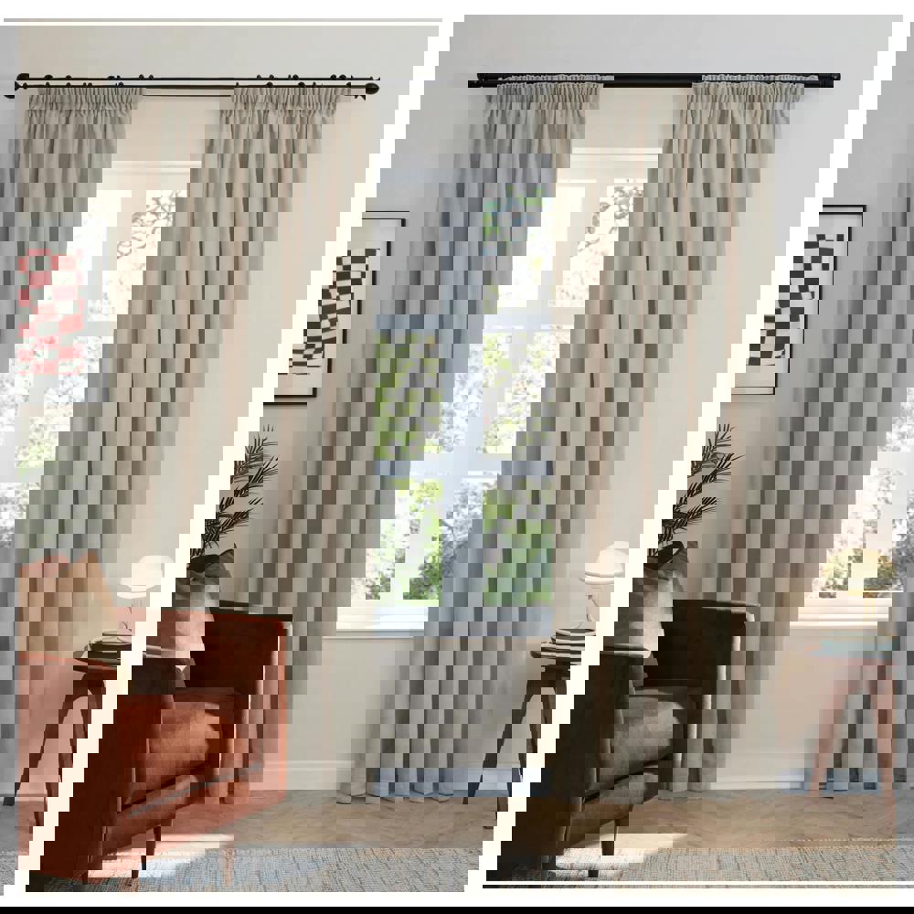 Bring a considered finish to your windows with the Furn Chenille Lined Pencil Pleat Curtains in Natural. Designed for everyday home styling, this pair is lined and features a soft-touch feel, making it a comfortable choice for living spaces and bedrooms alike.