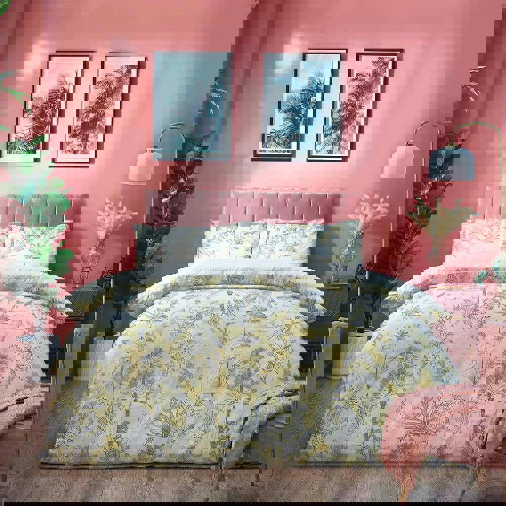 Bring a fresh, decorative finish to your bedroom with the Furn Colony Palm Duvet Cover Set in yellow. Designed for everyday use, this duvet cover set pairs a soft-touch feel with a hardwearing fabric technology, making it a practical choice for regular bedding changes.