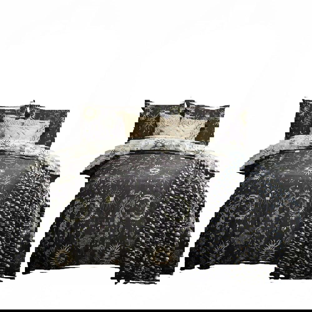 Bring a distinctive look to your bedroom with the Furn Constellation Duvet Cover Set in multicoloured. Featuring a constellation and galaxy-inspired design with jewel detailing, it’s an easy way to refresh your space while keeping your bedding feeling practical for everyday use.