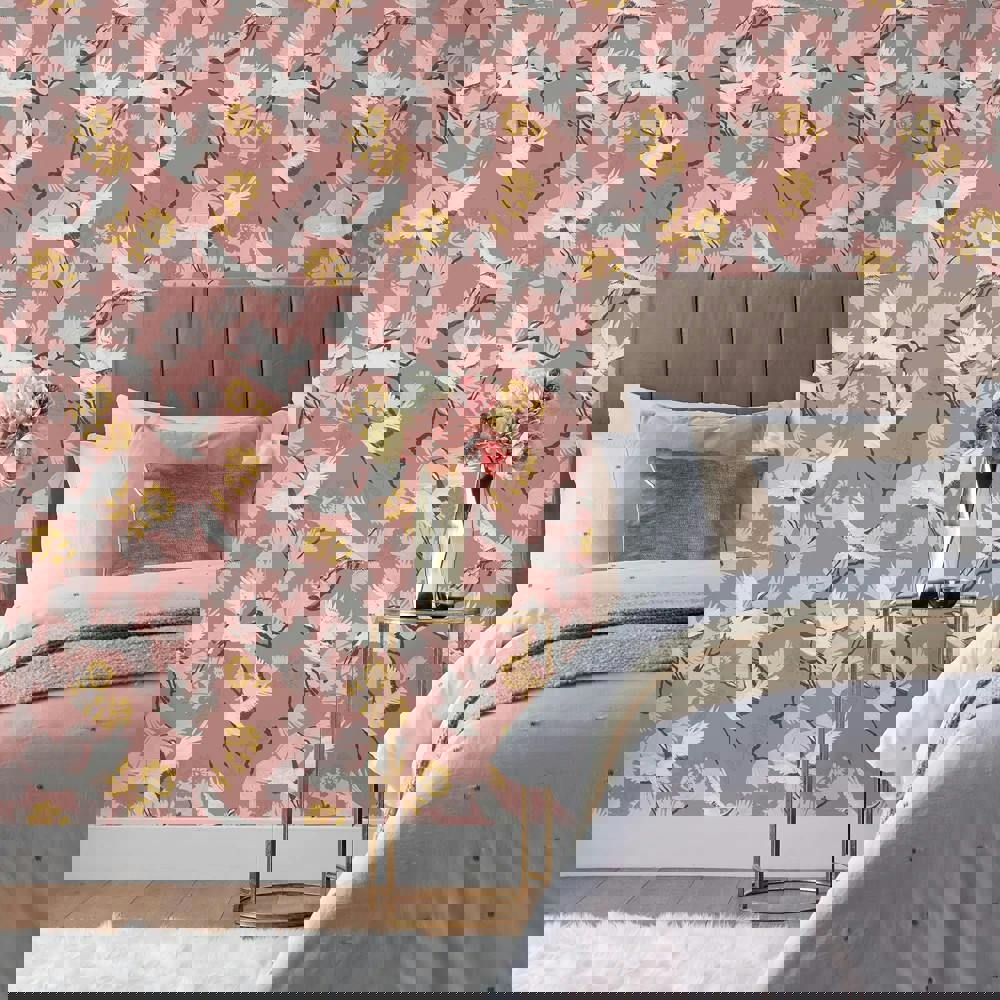 Bring a decorative finish to your interior with the Furn Demoiselle Wallpaper in blush. Designed to add visual interest to your walls, it features a crane and tropical-inspired pattern that suits a range of rooms and styling choices.