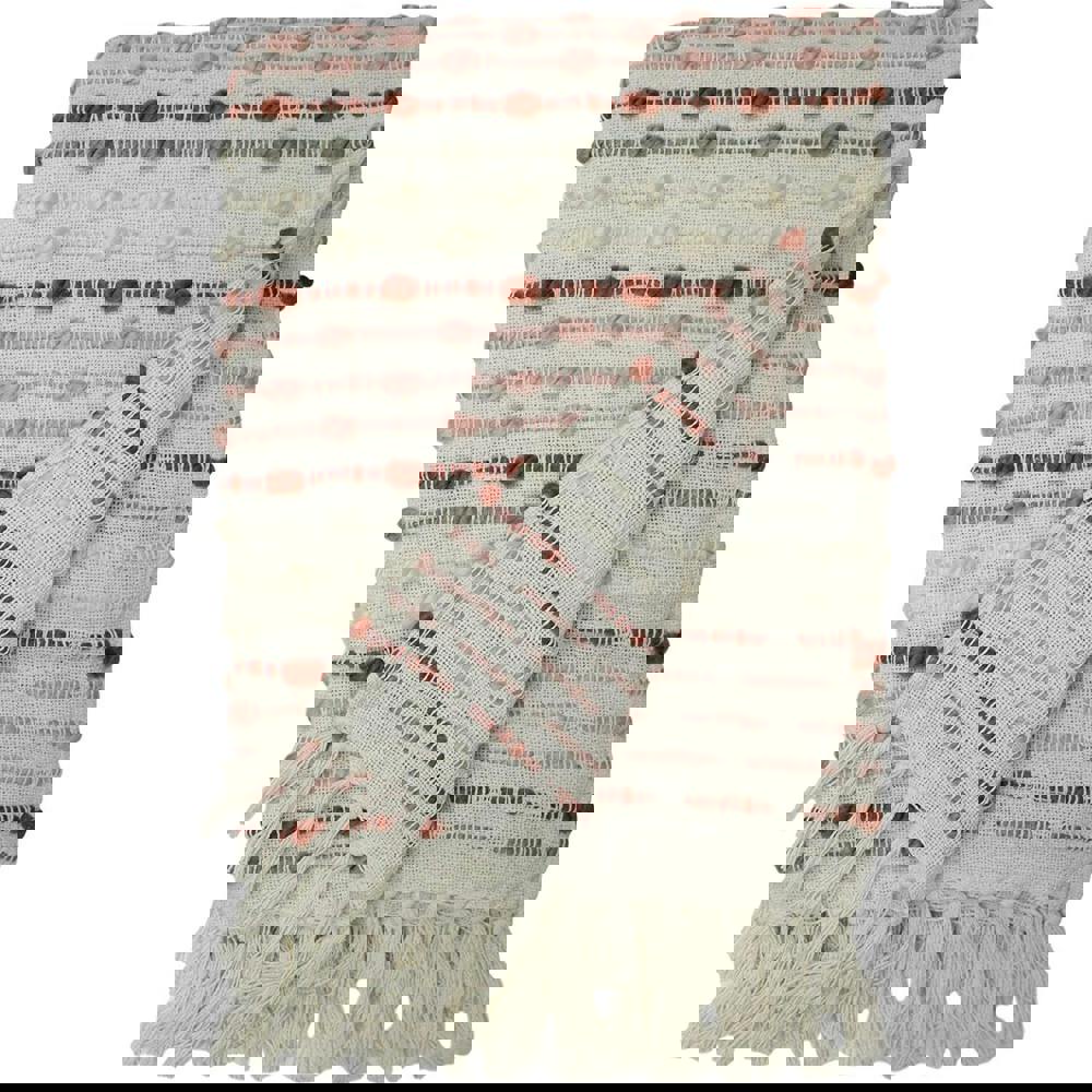 Made from a cotton and polyester blend, this throw is sized at 180cm in length and 130cm in width, making it easy to drape and style. A fringe trim completes the look, adding subtle texture and detail.