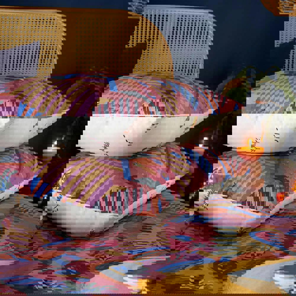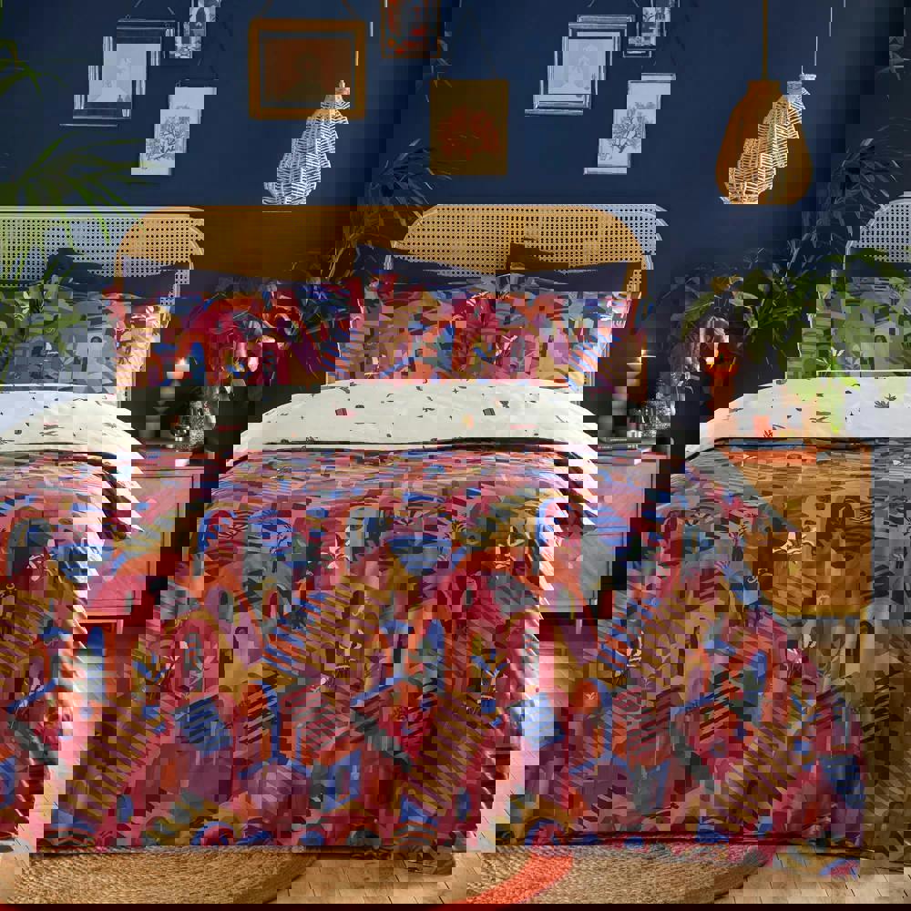 The Furn Eivissa Abstract Duvet Cover Set in magenta is designed to refresh your bedroom with a bold printed look. Featuring a reversible design, it offers two ways to style your bed, making it easy to change the feel of your space without switching your bedding.
