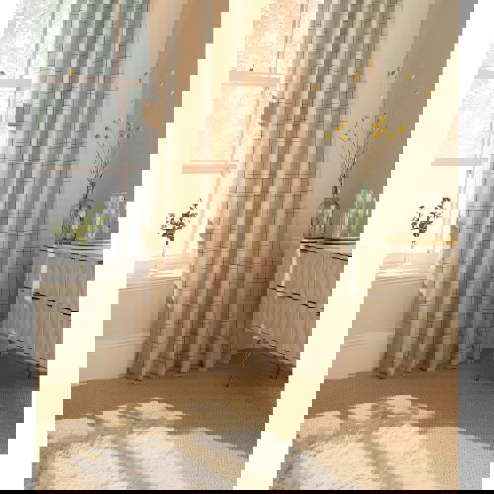 The Furn Ellis Ringtop Eyelet Curtains in Natural are designed to dress your windows with a clean, tailored finish. Featuring a windowpane check design on faux wool woven fabric, they bring subtle pattern and texture to a room while keeping the look understated and versatile.