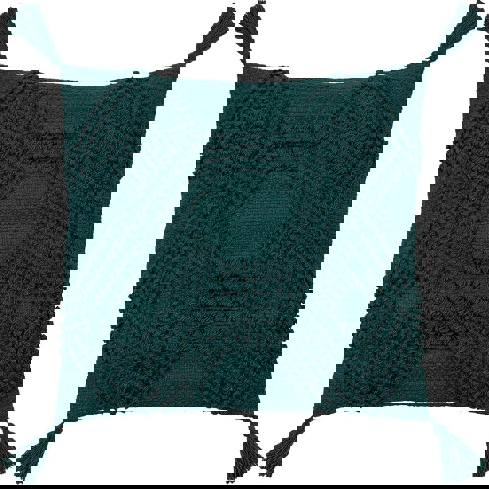 The Furn Halmo Cushion Cover in teal is designed to refresh your living space with a distinctive woven finish. Featuring a diamond and loop design on the front with a plain reverse, it offers an easy way to update a sofa, armchair or bed with added texture and colour.