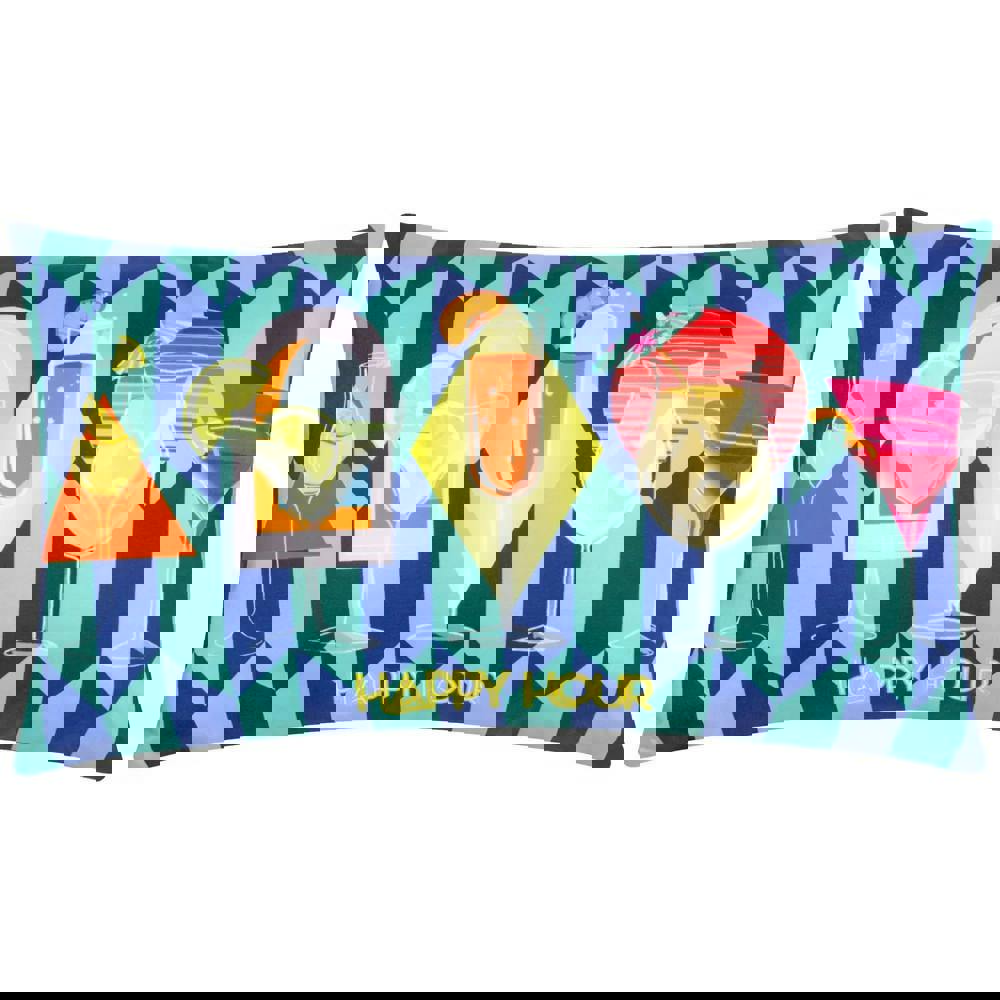 Bring a bold, modern look to your outdoor seating with the Furn Happy Hour Abstract Outdoor Cushion Cover in blue. Designed with a cocktail-inspired geometric contrast pattern, it adds visual interest while keeping the reverse plain for a cleaner finish when you want a more understated style.