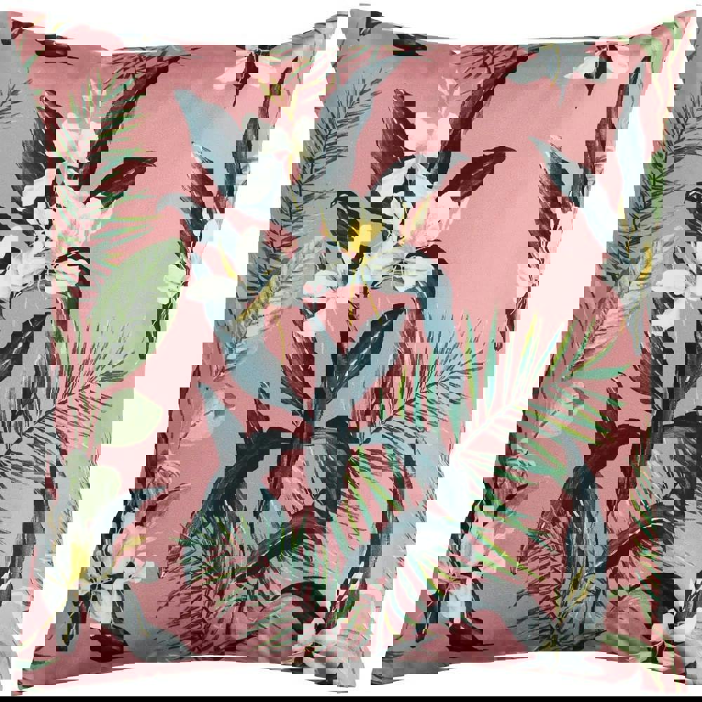 Add a fresh, decorative finish to your outdoor seating with the Furn Honolulu Outdoor Cushion Cover in pink. Designed in a square shape with a floral print and tropical leaves, it brings colour and pattern to patios, balconies and garden furniture. A hidden zip closure keeps the cover looking neat, while knife edging creates a clean, tailored outline.