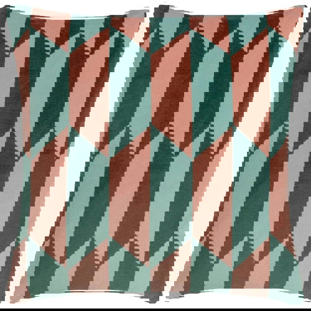 The Furn Kalho Jacquard Velvet Cushion Cover in pink and green is designed to refresh your space with a geometric front and a plain reverse. Finished in a soft-touch jacquard velvet, it offers a comfortable feel while keeping your look neat and considered.