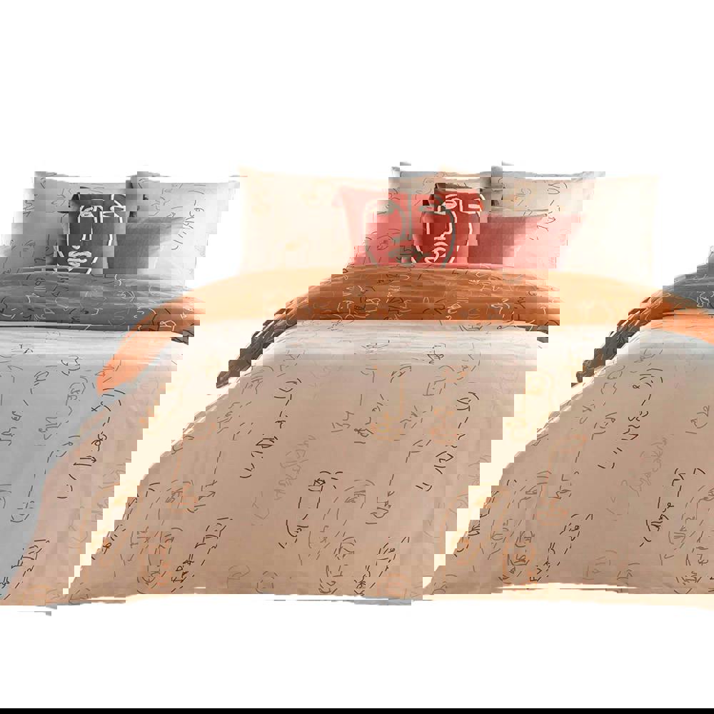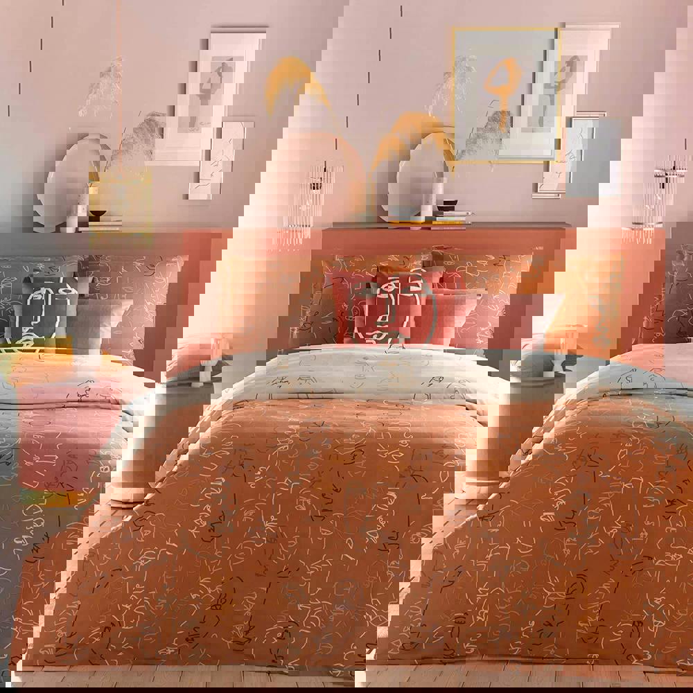 The Furn Kindred Abstract Duvet Cover Set in Apricot brings a distinctive abstract faces design to your bedding, with a reversible finish to change the look whenever you like. Designed for everyday use, it offers a crisp feel alongside a soft touch, making it a comfortable choice for regular bedroom refreshes.