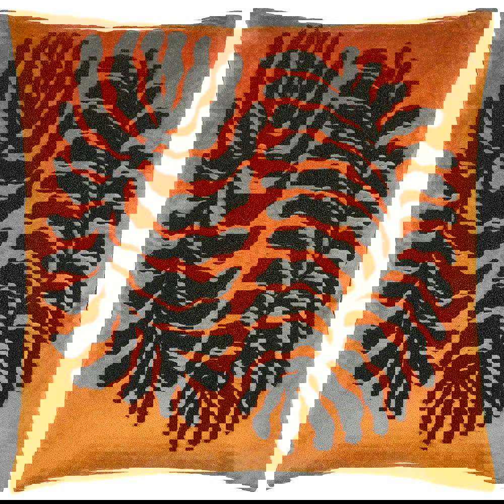 Detailed with a looped, tufted palm leaf design on the front and a plain reverse, it offers a clean look from every angle. A hidden zip closure keeps the finish neat, while knife edging and standard edging add a structured outline.