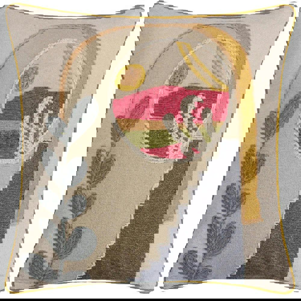 Made from 100% cotton, this cushion cover is finished with piped edging for a neat outline. A zip fastening allows the cover to be removed and fitted with ease. The design features embroidered motifs including plants, a sun and a window, with additional square, stairs-inspired elements for a distinctive look. Please note: insert not included.