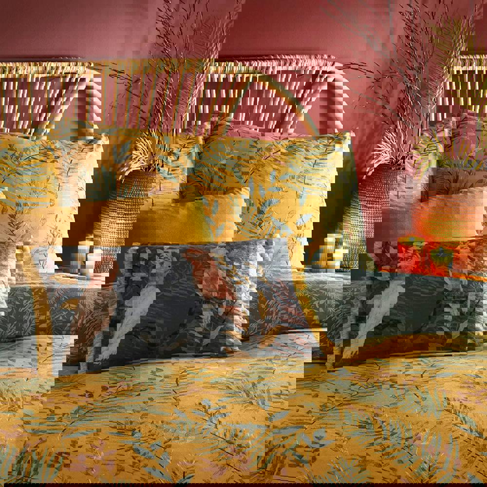 The Furn Mazari Duvet Cover Set in mustard yellow brings a bold leaf print to your bedding, with a reversible design to change the look whenever you like. Designed for everyday use, it offers a simple way to refresh your bedroom style while keeping your bed neatly dressed.
