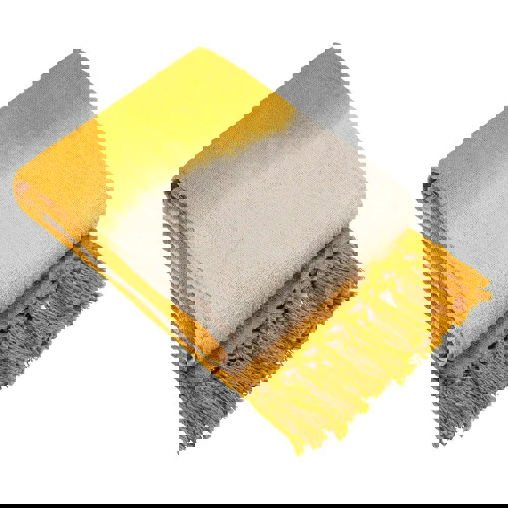 The Furn Mizu Dip Dye Tassel Throw in ochre is a reversible throw designed to add an extra layer of comfort and style to your space. Featuring a dip dye design, it brings subtle tonal variation that works well draped over a sofa, folded at the end of a bed, or used as a cosy wrap at home.