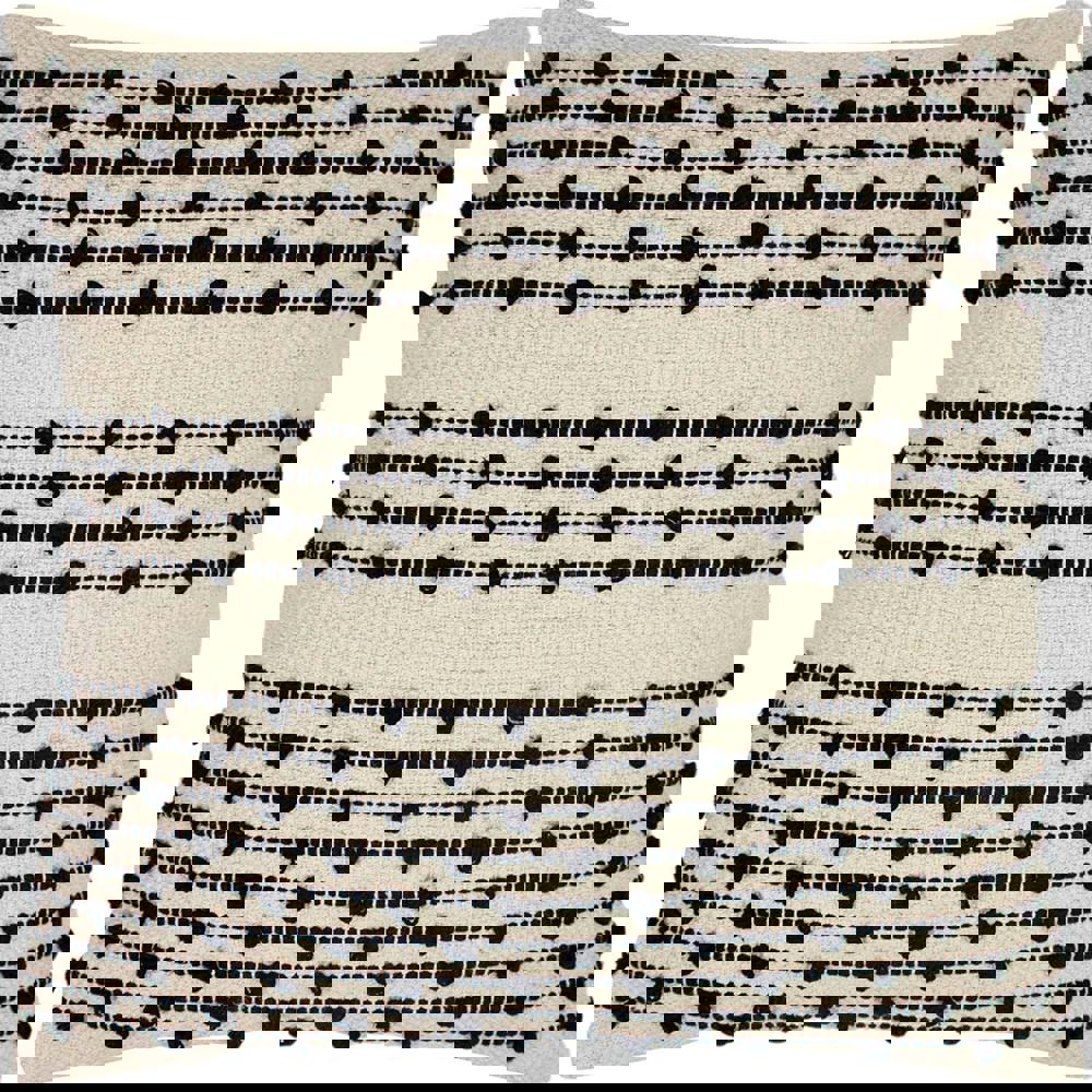 The Furn Mossa Cushion Cover in Natural/Black is a square cushion cover designed to refresh your living space with a clean, considered finish. Featuring a knotted loop design on the front and a plain reverse, it offers a simple way to change the look of a sofa, armchair or bed without replacing your existing cushion.