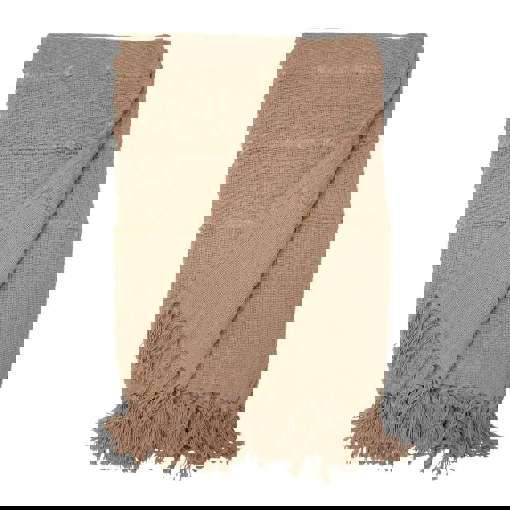 Made from a cotton and polyester blend, this throw offers a practical balance for everyday use. The tassel trim adds a decorative finish, making it suitable for styling as well as for keeping close by when you want a little extra warmth.
