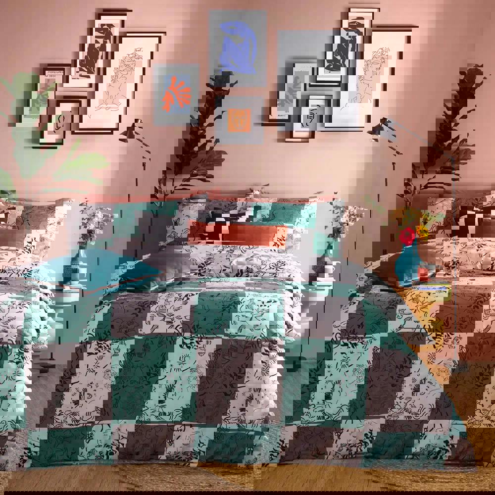 The Furn Mythos Reversible Checkerboard Duvet Cover Set in green/natural brings a bold mix of pattern and motif to your bedding. Designed to be reversible, it offers two looks in one, making it easy to refresh your bedroom style without changing your set.