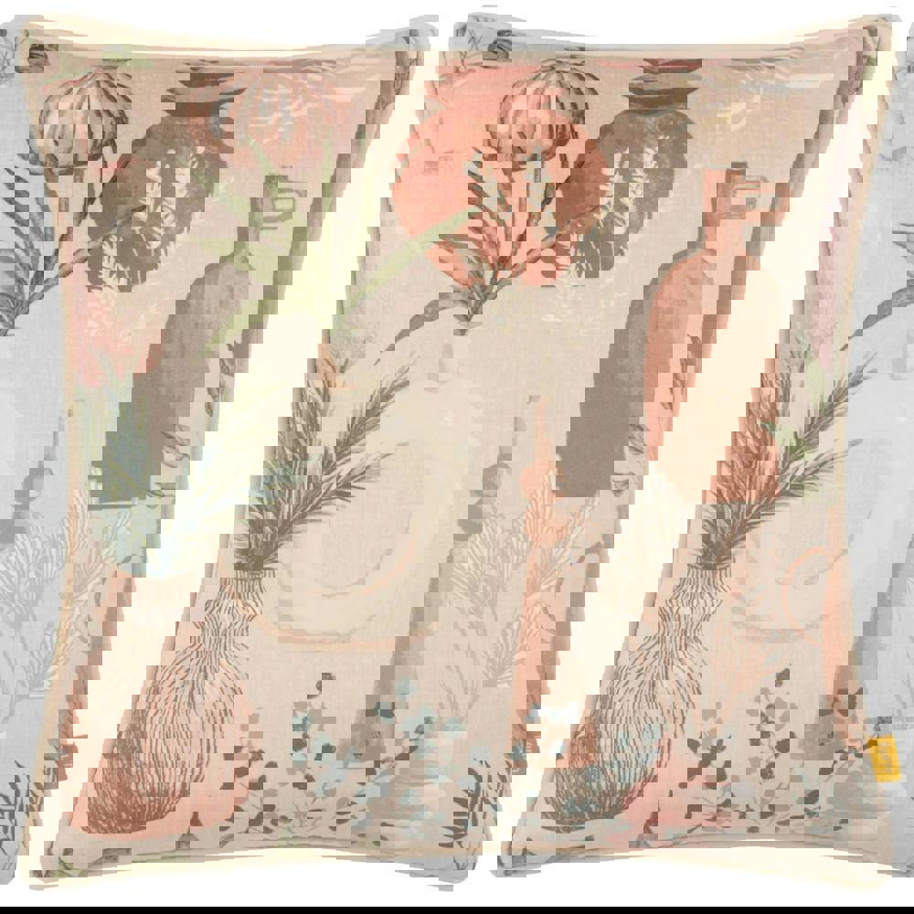 Made from 100% polyester with a soft-touch velvet feel, this cover features a printed design with earthen pots, palm leaf and sprigs, finished with piped edging for a neat outline. Turn it over to reveal a plain reverse for a calmer look, and secure it in place with a hidden zip closure for a clean finish.