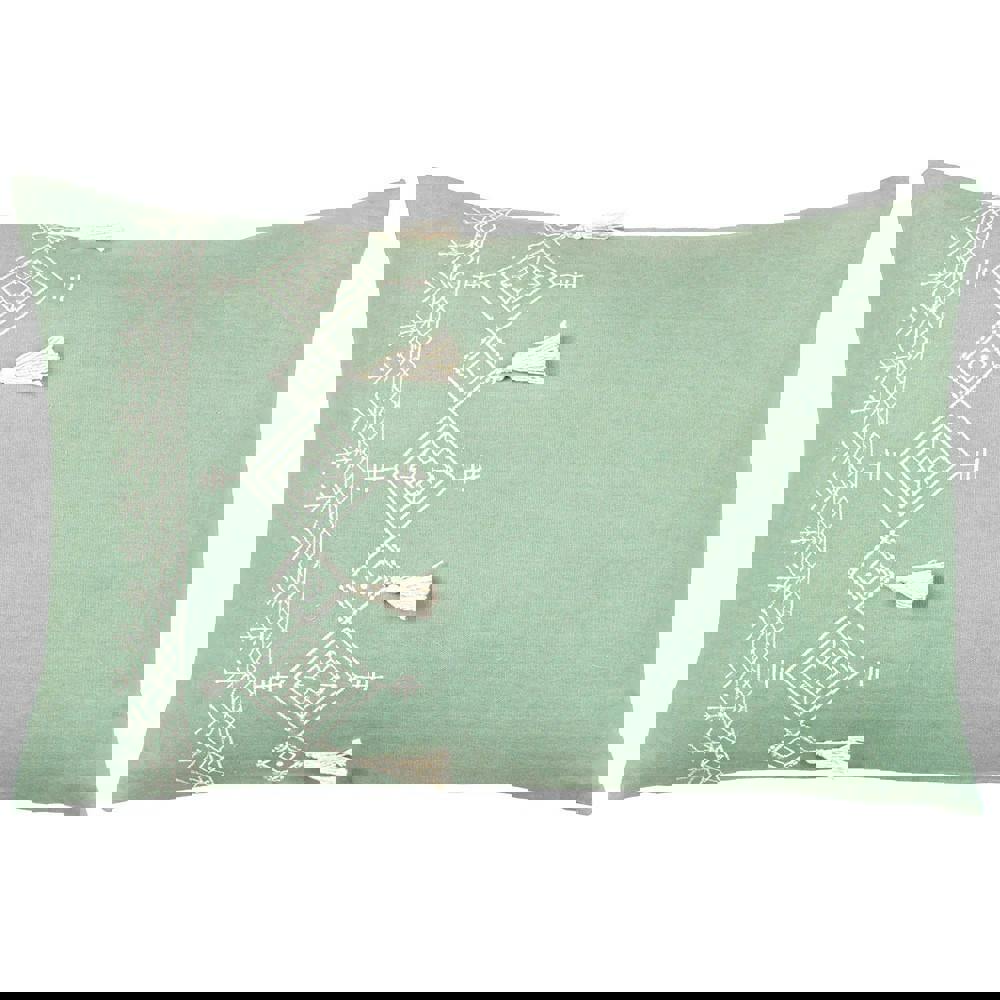 Featuring contrast detailing and embroidered accents, this rectangular cushion cover is finished with tassel trim for added texture. A plain reverse keeps the look understated, while the zip fastening makes it simple to fit and remove as needed. Please note: insert not included.