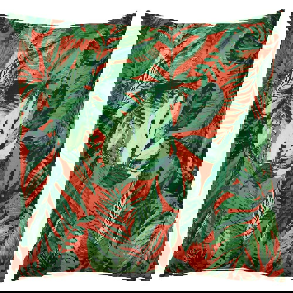 Bring a bold, tropical look to your outdoor seating with the Furn Psychedelic Jungle Print Outdoor Cushion Cover in coral. Designed as a cushion cover, it’s an easy way to refresh patios, balconies and garden furniture with an all-over leaf print that adds colour and pattern to your space.