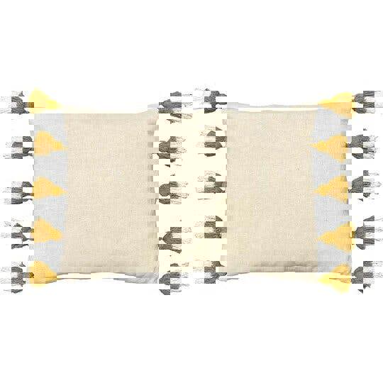 Add a decorative update to your soft furnishings with the Furn Rainbow Tufted Tassel Cushion Cover in ochre yellow. Designed to fit neatly on sofas, armchairs or beds, this rectangular cushion cover brings texture and detail to your space with a tufted finish and tassel trim. The two-tone design adds visual interest, making it easy to layer with other cushions for a considered look.
