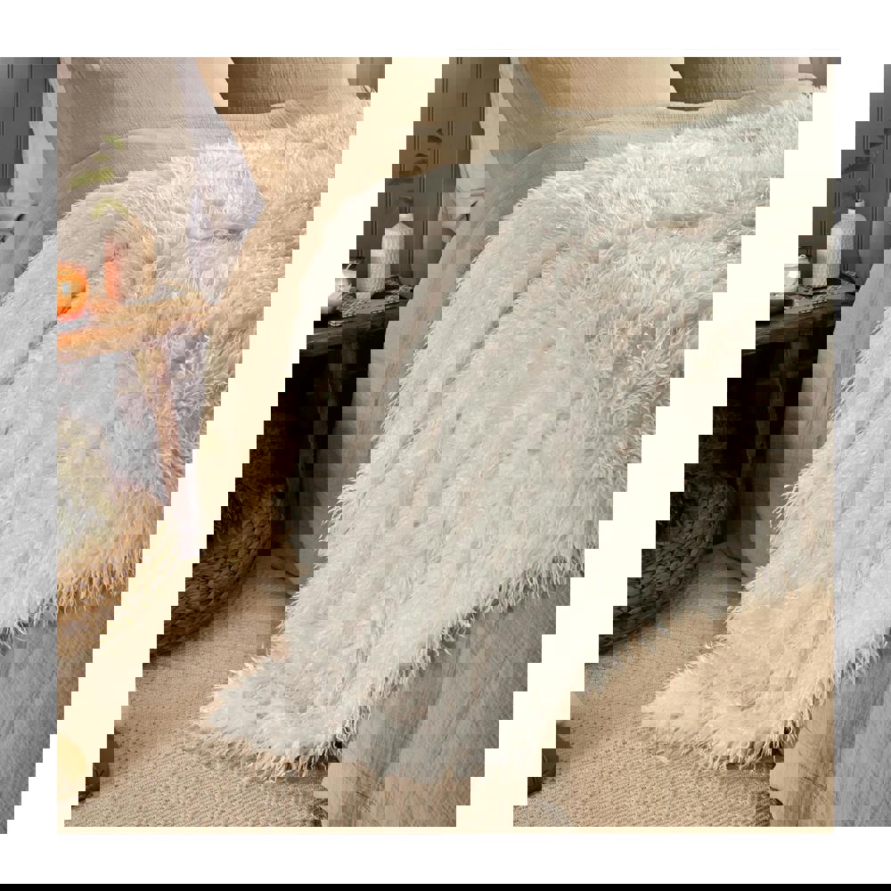 Finished in an ecru colourway, this throw features a plain design for easy styling with a wide range of interiors. The faux Mongolian fur front is paired with a velvet reverse, offering a smooth contrast and a comfortable feel whether you’re relaxing at home or adding an extra layer on cooler evenings.