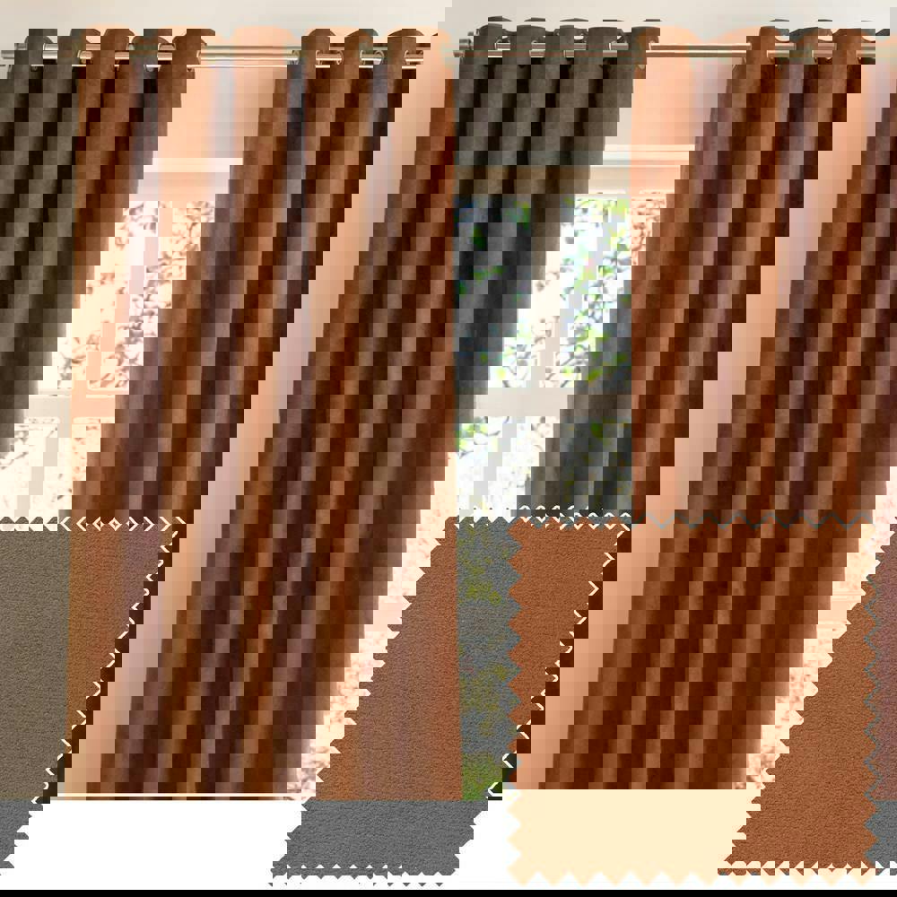 Bring a clean, understated finish to your room with the Furn Ultimate Faux Suede Eyelets Blackout Curtains in Cinnamon. Designed with a plain look, these curtains suit a wide range of interiors while adding a warm, rich colour accent.