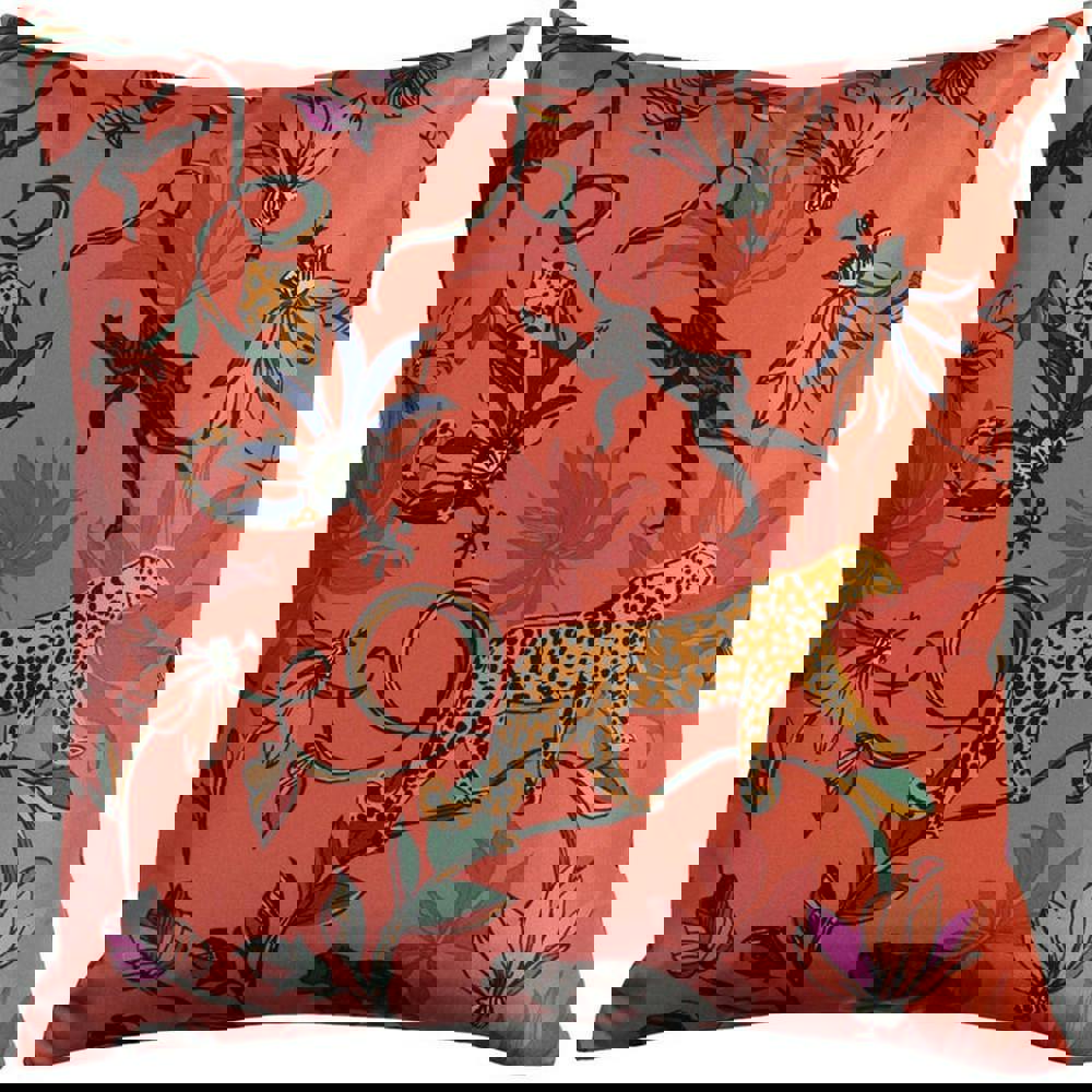 Add a bold, nature-inspired finish to your outdoor seating with the Furn Wildlife Outdoor Cushion Cover in orange. Featuring a lively mix of foliage, leopard and monkey motifs, it brings pattern and colour to patios, balconies and garden furniture while keeping your cushion insert separate.