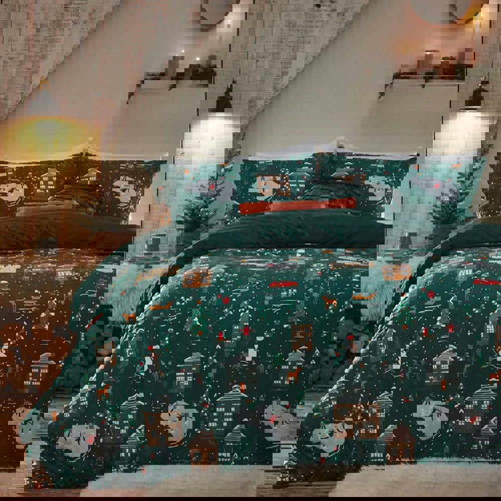 The winter-themed design features houses, pine trees and a snowman, making it an easy way to refresh your bedding for the colder months. A button fastening helps keep the duvet securely in place, while the crease-resistant finish supports a neat look with minimal effort. Lightweight, insulating and quick-drying, it’s a practical choice for regular changes and easy-care routines.