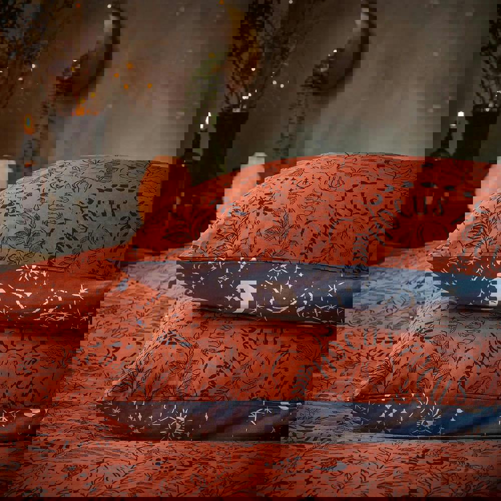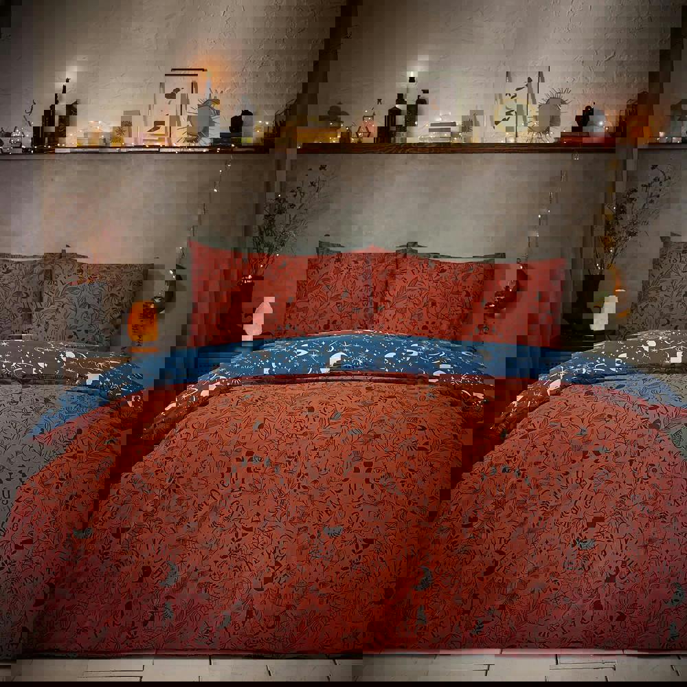 Bring a distinctive look to your bedroom with the Furn Witchy Vibes Reversible Duvet Cover Set in rust. Designed with a celestial theme featuring creatures and moon motifs, it offers an easy way to refresh your space while keeping your bedding coordinated. The reversible design lets you switch up the look whenever you like, making it simple to vary your styling without changing your set.