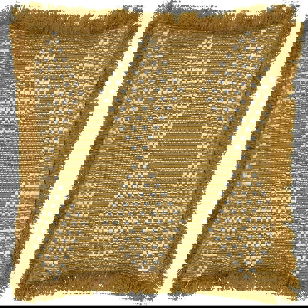 The Furn Woven Cushion Cover in gold is designed to refresh your seating with a decorative, textured finish. Featuring a diamond and stripe design with embroidered detailing and fringe, it brings added interest to sofas, chairs, and outdoor furniture alike, while the plain reverse offers a simpler look when you want it.