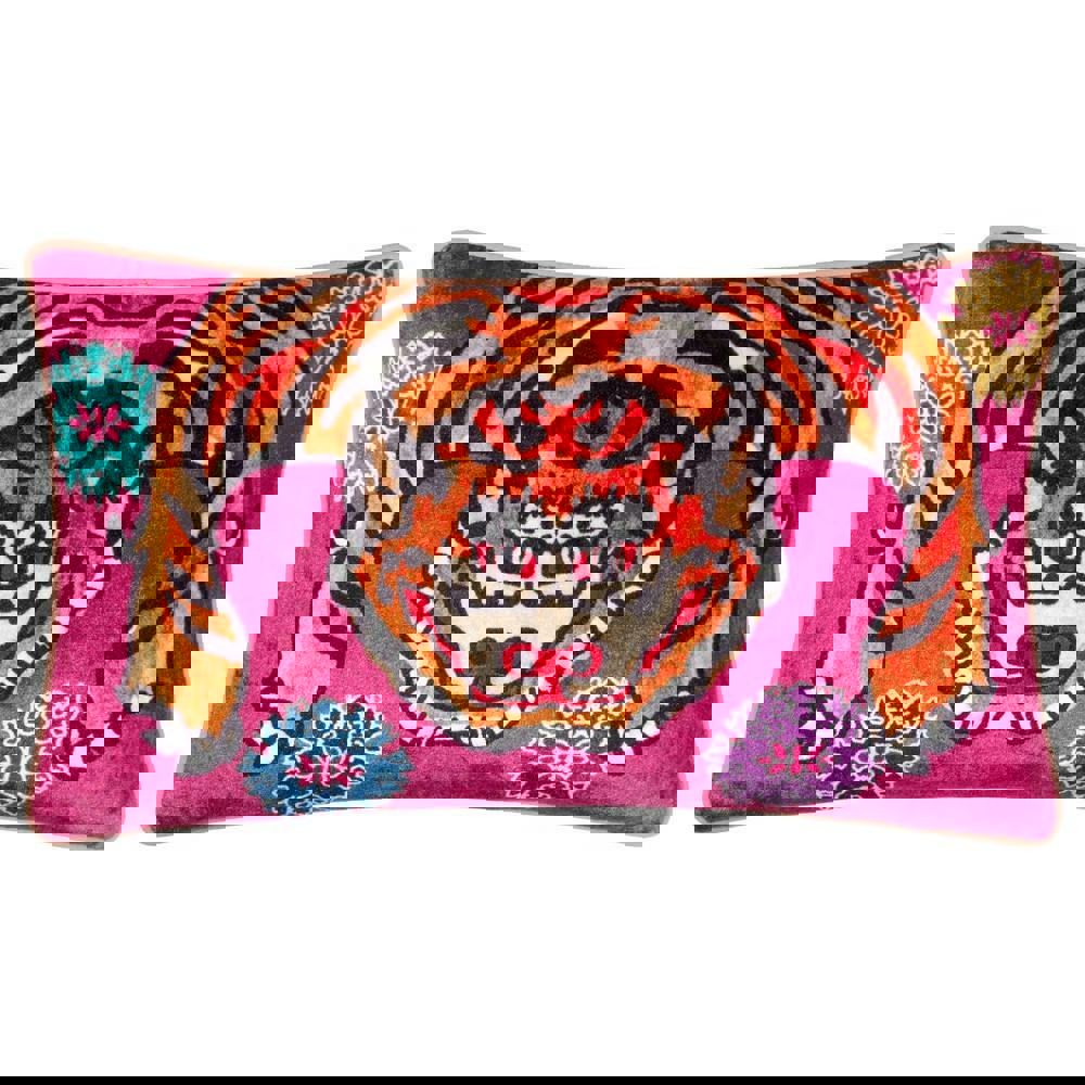 The Furn Year Of The Tiger Velvet Cushion Cover in pink is designed to refresh your soft furnishings with a bold, decorative finish. Featuring a printed design that combines abstract shapes, floral elements and a tiger motif, it brings pattern and colour to sofas, armchairs or beds while keeping your look easy to update.