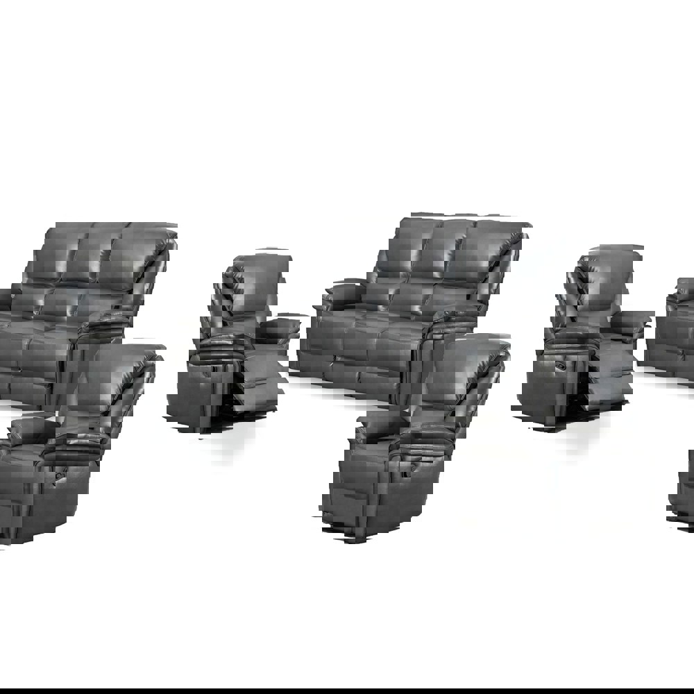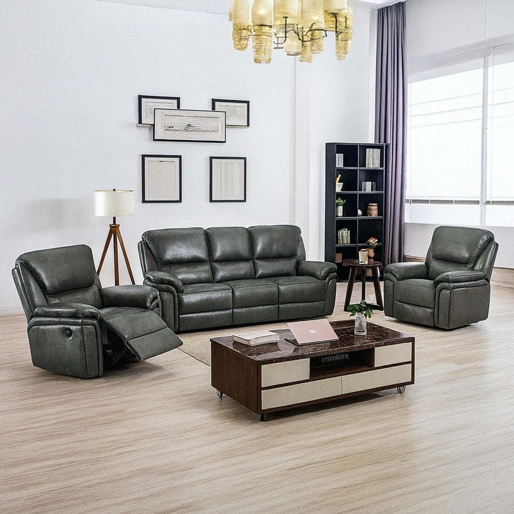 The Boston 3-piece sofa suite includes a non-reclining 3 seater and 2 reclining armchairs. It's upholstered in leather aire material. The design is made for comfort. It includes luxuriously padded arms and a manual 3-positioning recliner function. The seat fillings are UKFR foam and include a sprung seat for longer-lasting comfort.