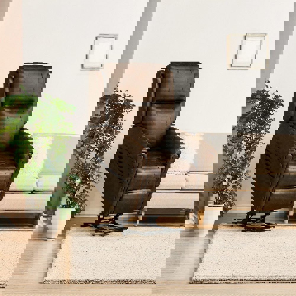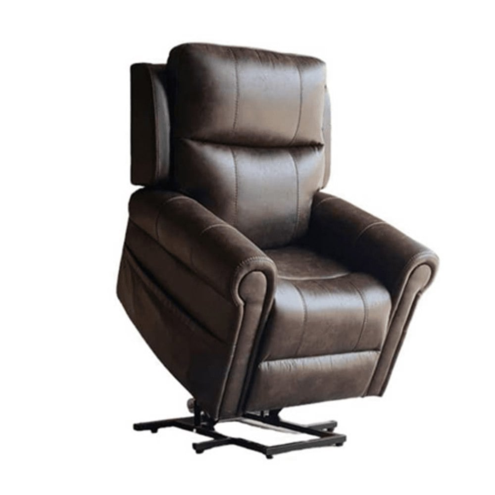 Unwind in luxurious comfort with this elegant rise and reclining armchair. Crafted with meticulous attention to detail, this chair boasts a sturdy construction built to last. The easy-to-clean brown leatherette upholstery offers a touch of sophistication, while the electric power assistance ensures effortless operation. With a generous seating capacity of 150kg, this armchair is designed to accommodate users of various sizes comfortably. Measuring 108cm in height, 92cm in width, and 92cm in depth, it strikes the perfect balance between spaciousness and compact design. Elevate your relaxation experience with this exceptional rise and recliner,