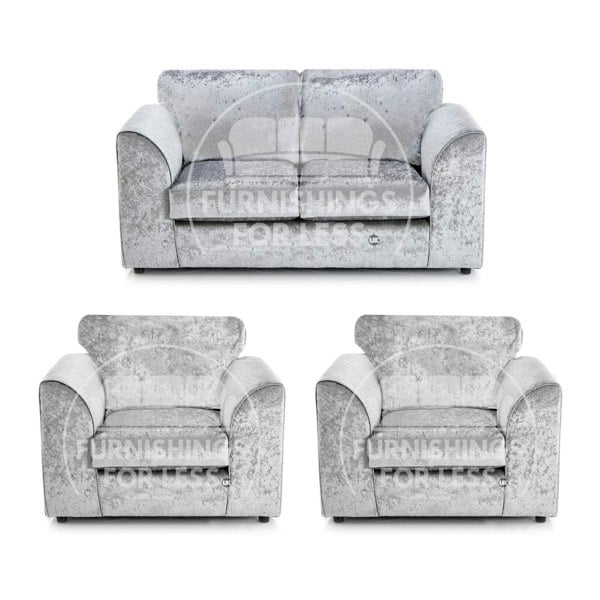 Add a touch of luxury and comfort to your living space with the UK-Made Crystal Crushed Velvet Sofa Set. This elegant 3-piece suite includes a 2 seater sofa and 2 matching armchairs, all upholstered in shimmering crushed velvet for a glamorous finish.