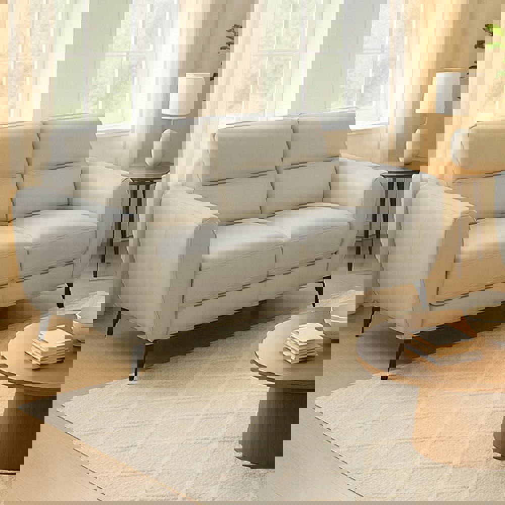 Upgrade your home with the Leo 2 seater, a stunning combination of style, comfort, and durability. Upholstered in elegant leatheraire cream fabric that adds a modern, sophisticated touch to any living space.