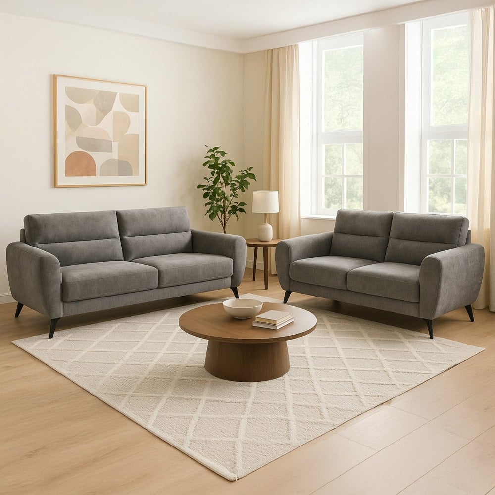 Upgrade your living space with the stylish Leo sofa suite, featuring both 3-seater and 2-seater configurations in elegant battleshop grey chenille fabric. Designed for both comfort and style, this suite provides generous seating for family and guests.