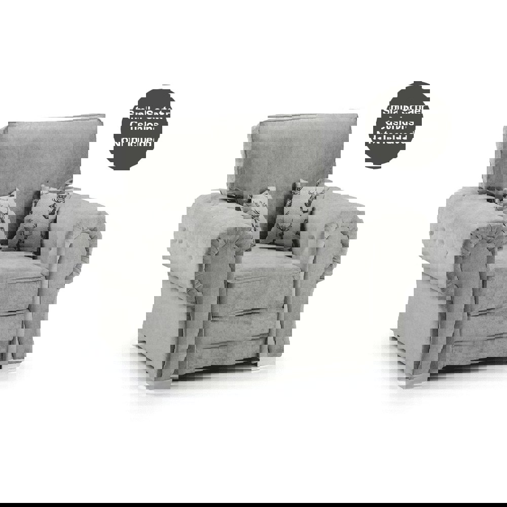 This armchair is upholstered in a premium fabric with chrome feet. Comes with full back cushions. Supplied with foam seating cushions for longevity and comfort.