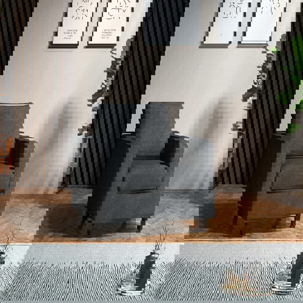 Elegant square arms paired with sleek black wooden feet for a modern, timeless appeal.