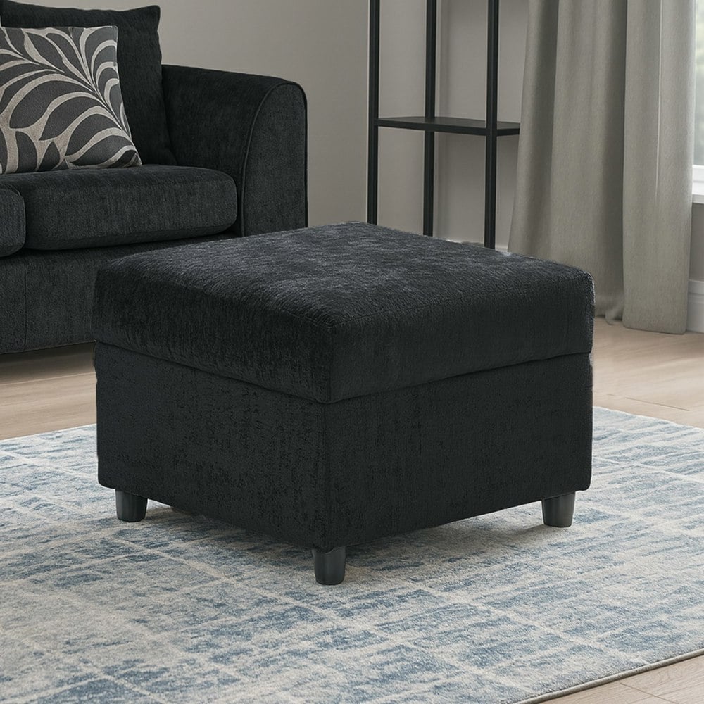 Furnishings For Less Zink Fabric Chenille Black or Grey Footstool