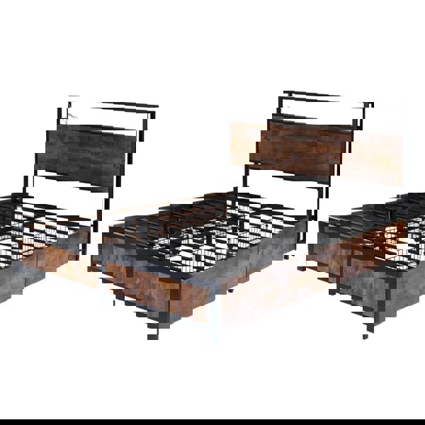 This Double Bed Frame combines a streamlined metal frame with practical storage and integrated charging for everyday convenience. Designed to support your mattress with strong steel slats, it offers a stable base while keeping the overall look clean and contemporary.