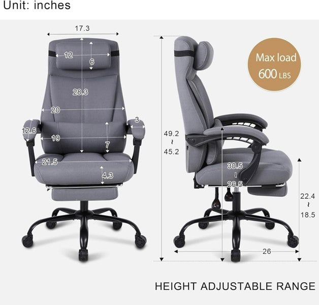 The sitting height of this computer desk chair can be adjusted freely between 45-53 CM/17.7-20.